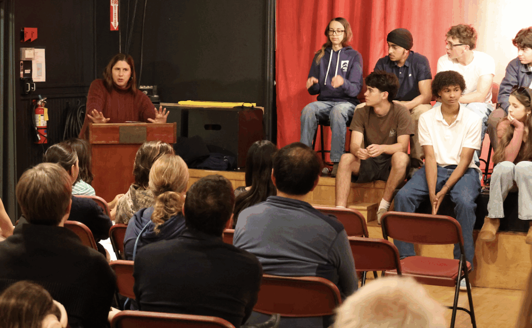 Interim Head of Upper School Andra Marziano moderated the evening. She began by asking each panelist a series of specific questions about academics, culture, size, transitions, the application process, and more. She then opened up the conversation for questions from the audience. These centered around admissions testing, interviews, making friends, homework and academic rigor, clubs and other activities, and transportation to and from school.